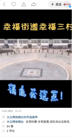 而在山东烟台,当地一个社区菜市场外,大家排队买菜,自觉拉远距离,排队排出了“北欧风”。