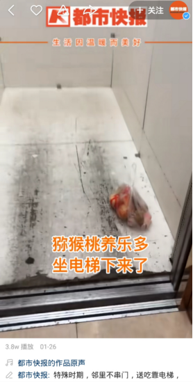 在浙江杭州,特殊时期,电梯成了楼上楼下日常使用的“货运神器”。