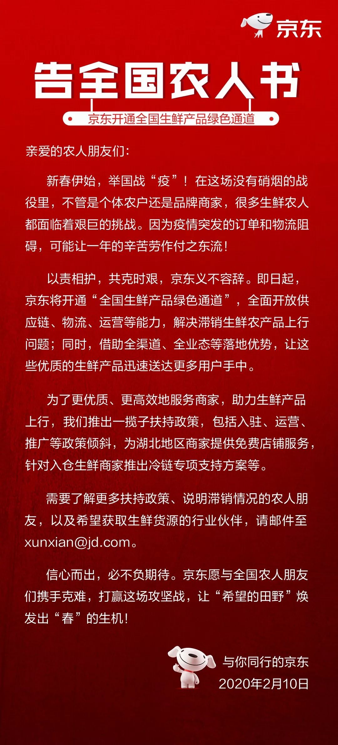 随着抗击疫情战役的进一步深入,保供应、促民生,成为全社会关注的重点。为了更好帮助更多中小农户与生鲜商家解决滞销农产品上行的问题,2月10日,京东发布“告全国农人书”,宣布开通“全国生鲜产品绿色通道”(下称“绿色通道”),全面开放供应链、物流、运营等能力,解决滞销生鲜农产品上行问题;同时,借助全渠道、全业态等落地优势,让这些优质的生鲜产品迅速送达更多用户手中。京东物流也将凭借一直以来建立的供应链优势,全速运转持续为全国众多生鲜商家保驾护航。