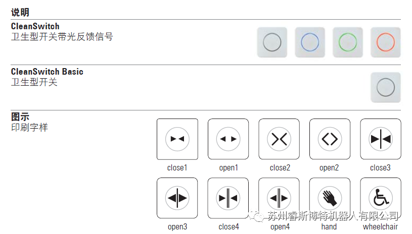 CleanSwitch 的设计既醒目又简洁,可以根据客户要求进行各种方式的调整。一方面,光反馈信号的颜色、亮度和模式可在几秒内迅速切换,无需使用任何工具。另一方面,Bircher 还拥有丰富的图示选项,这些图示可以印在设备前盖上以方便用户操作。可根据需要使用个性化图示和商标。