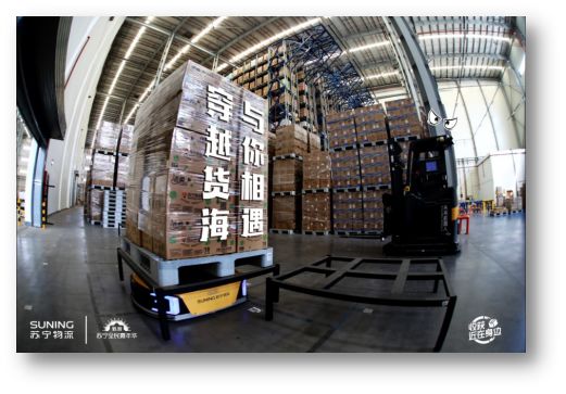 据了解,苏宁无人仓以AGV系统为核心载体,以自主研发的设备控制与调度平台为仓库的大脑,结合无人叉车、无人包装机、机械臂等无人设备,组成了高效安全的“战疫”团队,保障了春节期间的用户购物需求。