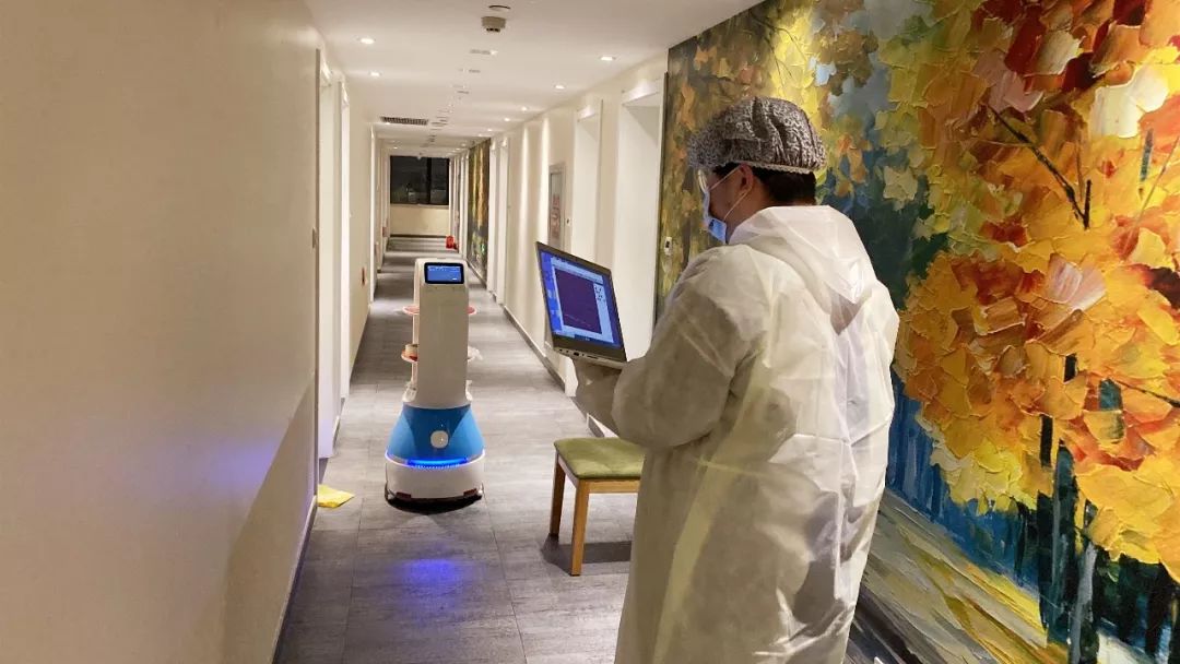 在抗击新型冠状病毒肺炎疫情的关键时刻,武汉市纽宾凯酒店被迅速建成集中隔离点并投入使用,成为救治疑似患者和密切接触者的“生命通道”。为妥善安排被隔离人员的三餐,隔离点上线机器人免接触配送服务,避免交叉感染的同时,也给隔离区的人们带去欢乐。