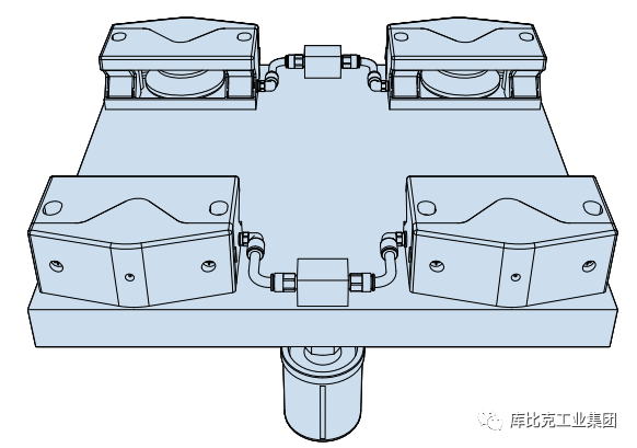 环形自动装配线具有多个工位,也就是说在环形导轨上具有多个滑座,每个滑座上都安装有导轨润滑块,对V型导轨面进行润滑,对多个滑座的润滑块,进行手动加油将是非常麻烦的工作。