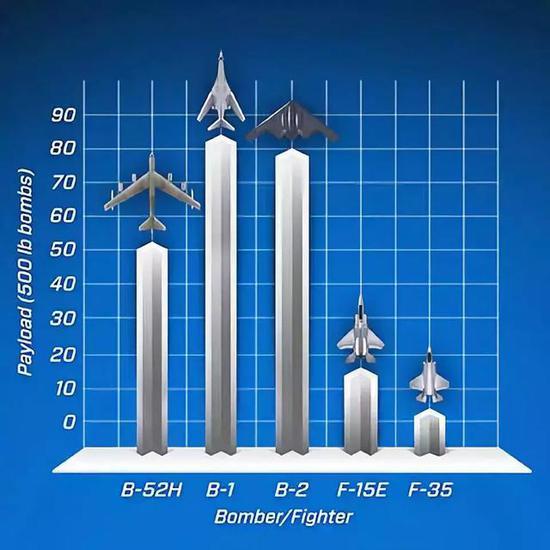 美军战斗机或者轰炸机的有效载荷(500磅炸弹为单位)对比图