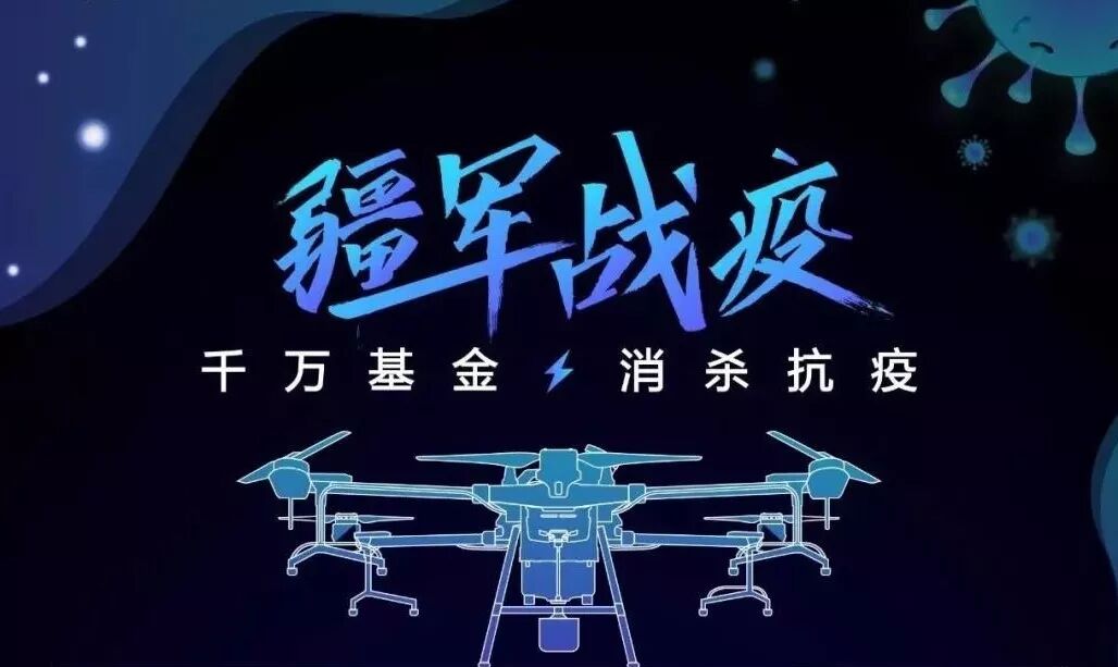 为响应国家的号召,积极履行企业社会责任,DJI 大疆农业现正式发布「 疆军战疫 」行动,设立 1000 万基金支持各地战疫先锋,并将发布消杀指南等,助力安全防疫。自疫情发布以来,DJI 大疆农业各地飞手与合作伙伴主动请缨,使用植保无人机支持各地抗击疫情。河南宝丰、成都崇州、山东聊城、湖南常德等地的大疆农业植保队纷纷行动,为村庄及主要街道口喷洒消毒液剂,协助当地消杀防疫。