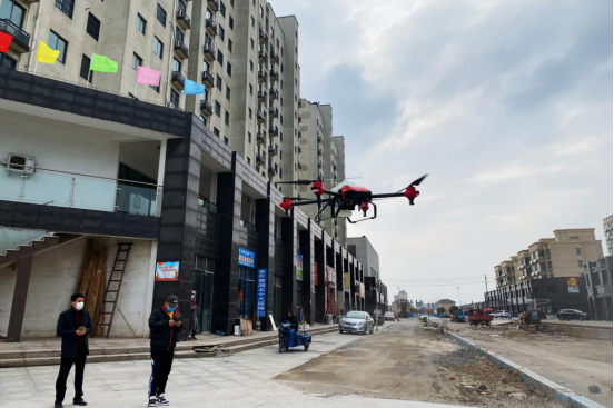 为控制疫情扩散传播,经开区恒跃村与农服中心联系,请来农机志愿者,采用植保无人机喷洒消毒的方式,对该区最大的拆迁安置小区港湾新城进行航空喷洒消毒,实现了全小区防疫消毒全覆盖。