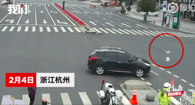 民警被空投口罩 无人机送来快递交警大哥请签收