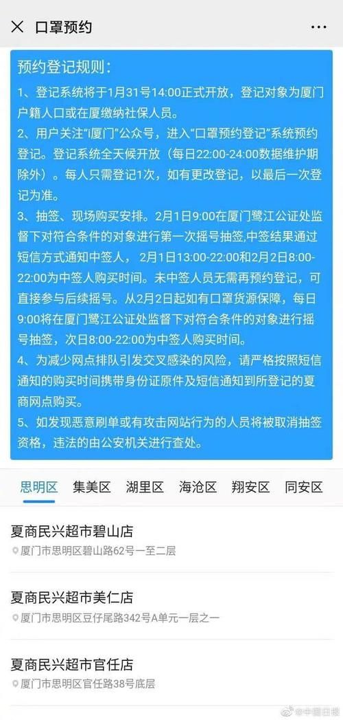 当疫情始料不及地随着回家过年的人们扩散,“罩”顾好自己首当其冲。口罩的短缺让平民百姓一筹莫展的时候,厦门1月26日先是启动夏商民兴超市10家门店售卖口罩,紧接着27号在66家夏商民兴超市投放100万个平面式口罩,定价0.9元/个。再后来因为购买人群太多,厦门市委市政府为市民和企业提供权威综合政务服务的“i厦门”公众平台开始从2月1日起启动系统摇号预约购买,减少网点排队引发的交叉感染的几率。急民之所需,为民着想落实到实处,让民众安心更放心。