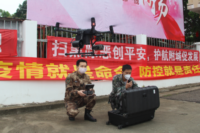 疫情期间,广西桂林警方发挥警务工作离群众最近的优势,灵活运用无人机、巡逻车、小喇叭等,努力做到疫情防控宣传全覆盖、接地气。无人机高空喊话:“骑电动车的这位市民,请你把口罩戴起来,桂林特警提示您不要外出逗留。”2月6日开始,一段“硬核”的防疫视频在朋友圈里广为流传,视频地点在桂林市三里店附近,一台无人机正对不戴口罩、人员聚集等防疫隐患行为进行监测和喊话。