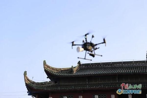 2月9日,庐山市公安局启用无人机在城区进行防疫宣传和劝导。
