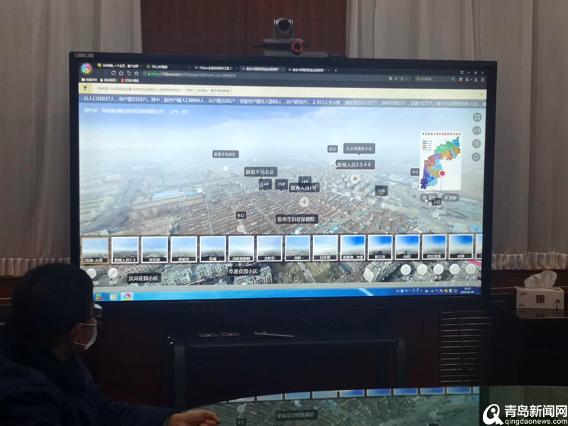 根据胶州市关于建立“一图四台账”防疫工作部署,为进一步将防疫工作精准到管区、社区,逐层织密防控网格,2月8日,阜安街道将“防疫作战图和人员构成台账、卡口人员台账、创业人员台账、重点留观人员台账”上网、上线,进手机终端,实现无人机空中巡查、智慧城市、地理大数据等技术的深度融合,创新开发了基于VR信息矩阵的智慧防疫管理平台,并在大同管区的8个社区成功开展应用试点。