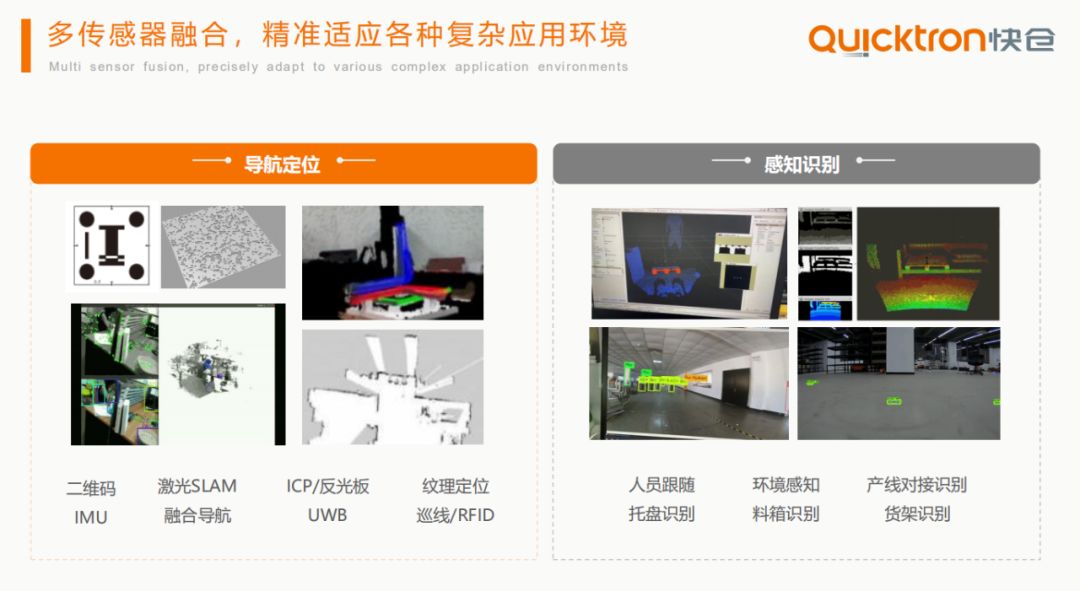 包括环境感知、智能避障、自主导航等,像医院、机场火车站、工厂产线这类人机混场的场景中,传统导航方式存在一定的局限性,快仓于2018年成立了自动驾驶团队,专注于四面墙内的自动驾驶技术研发工作,例如为机器人配备slam导航方式,它摆脱了对辅助导航标志的依赖,可将环境中的自然物体作为定位参照物,在四面墙内自主识别环境并自动规划路径,实现智能避障。当然同时使其具备多种混合导航模式,可自由切换slam、纹理、二维码、IMU、UWB等多种导航方式也是快仓团队积极努力的目标!
