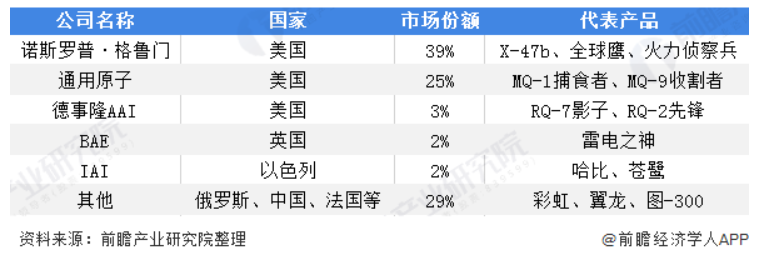 2018 年全球军用无人机制造商及市场份额