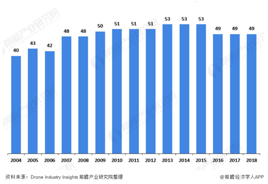 Drone Industry Insights 数据显示,截至 2018 年,全球已经有包括中国、美国、以色列等在内的 49 个国家研发无人机。