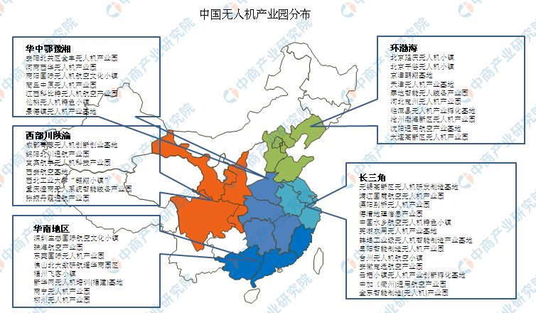 中国无人机企业分布广泛,各地都在发展无人机产业,华东和华南地区为无人机企业数量最多的聚集区。