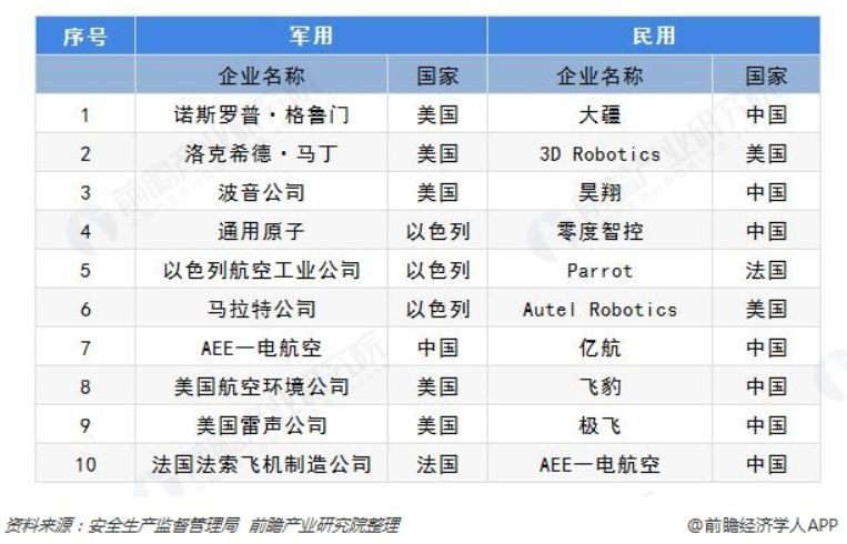 全球军用和民用无人机 Top10 企业