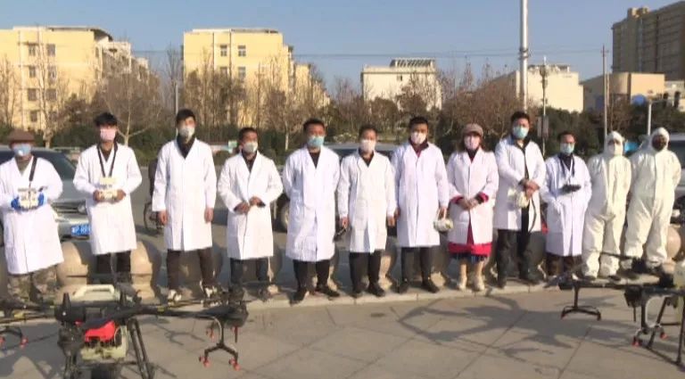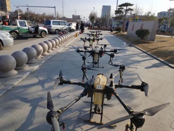 河南省方禾科技淮阳分公司大疆无人机防疫志愿者服务队于2月10日首次出动,带来了7台植保无人机T20,初步计划利用一周的时间,预计作业面积将超过100万平方米。