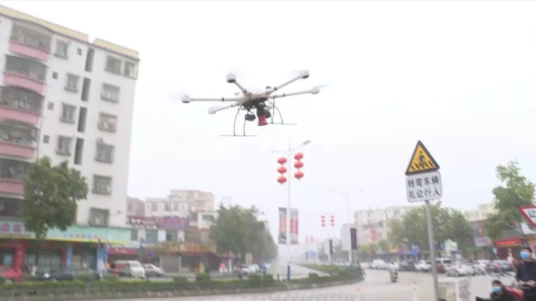 为做好防疫宣传的全覆盖,提高市民的防范意识,四会市委宣传部就采用无人机的方式,对人员密集场所,还有背街小巷等平时大喇叭去不到的地方全覆盖地宣传。