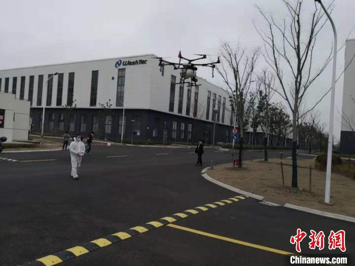 无人机通过实时图像识别地面目标,识别在建工地是否违规复工、园区中复工企业防疫措施是否运用到位等。 徐明睿 摄
