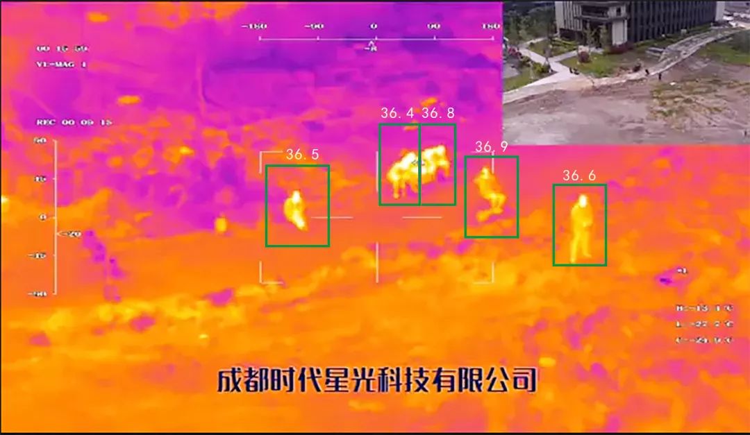 热成像无感测温,远程测量居民体温,飞机远离目标人体50米以上,地面站显示人体最高温度。