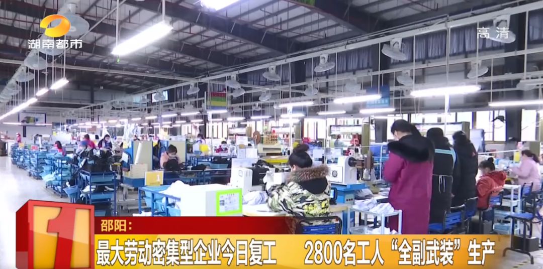 邵阳:最大劳动密集型企业复工,2800名工人“全副武装”生产