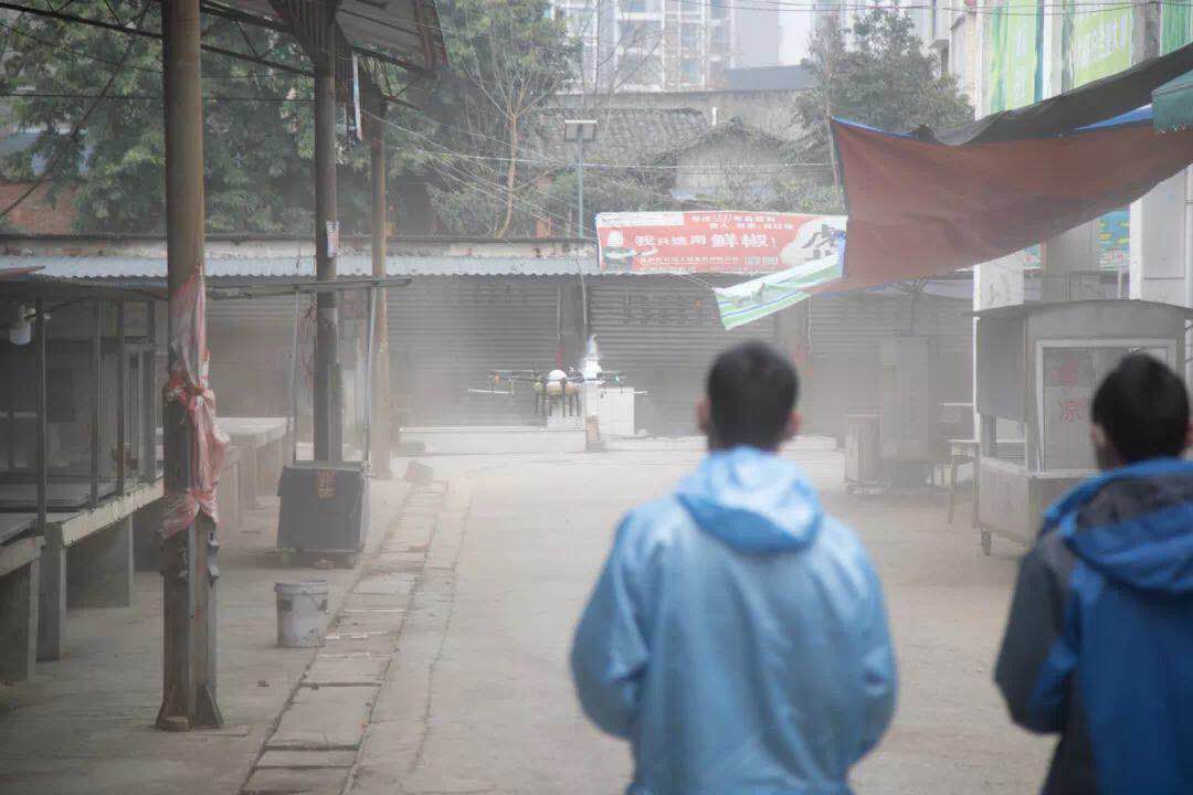 “飞”遍医院周围、高效消毒喷洒