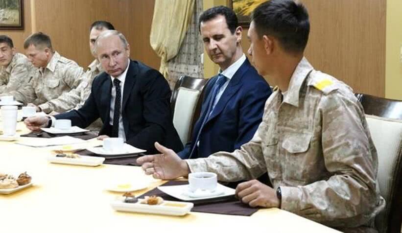 图为叙利亚总统巴沙尔访问俄军位于叙境内的空军基地