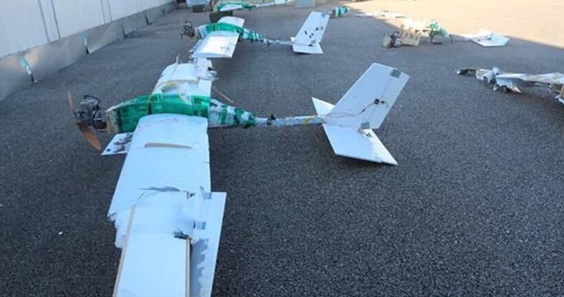 图为俄军国防部展示的叙境内空军基地拦截的敌方无人机