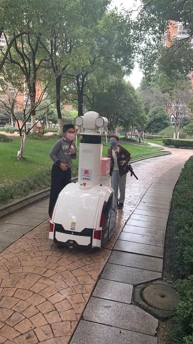 “戴着一次性医用口罩、手捧红色爱心口罩捐赠箱的金宝宝一上岗,就吸引了很多居民的关注,经常被业主拦停、合影。”业主宋婕笑道,金宝宝还是一个特别有礼貌的机器人,巡逻时会通过声波和激光感应,遇到行人或车辆会主动让行。