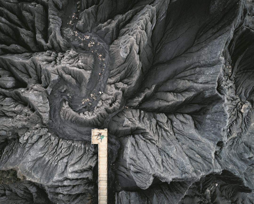 A :在地面上拍摄和用无人机航拍相比较,透视和角度都非常不同,但是在这两者中,我都会尝试将风景压缩成几何图形来创造抽象的作品。我的无人机摄影作品大多是从空中垂直向下拍摄的二维“俯视图”;在地面上我也常使用极具压缩效果的 长焦镜头进行拍摄。这两种拍摄方式都会弱化画面的层次感和比例感,使画面看起来有几分超现实。但是在这样的抽象作品中加入人、动物、车辆等元素,能提升画面层次感,使画面更加完整。