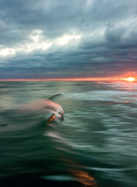 “纽约的海面不常有海浪光临,它们的到来通常伴随着风暴,那天是个多云的天气,只有在太阳即将沉入地平线的短短的几分钟里,一切都恢复了正常, 我在短时间内拍了大概30 幅影像,有几幅影像还不错。我在过去一年里的所有实践, 以及成千上万张废片,造就了这幅作品。”