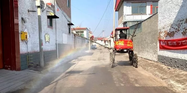 原本在田间看到的农业机器,如今出现在村里的大街小巷上,这些“防疫奇兵”确保了消杀的范围无死角、全方位。(清徐县新闻中心)