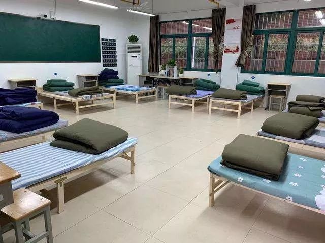 2月4日,根据洪山区疫情防控指挥部部署,武汉市石牌岭高级职业中学被临时改建为“方舱医院”,用于收治轻症发热患者。不到24小时,洪山区800床位方舱医院已准备就绪。