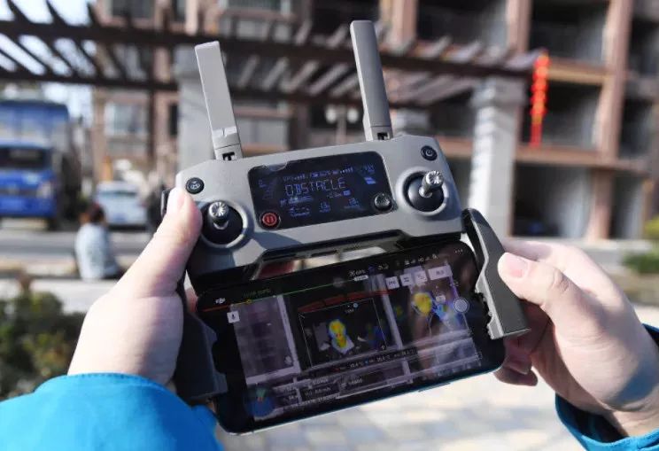 无人机带上红外线热成像镜头,飞行到窗口快速检测居民体温,用喊话器与居民沟通,充分实现了无接触式交流。工作人员无需逐户拜访,居民不用出门也能完成防疫排查。