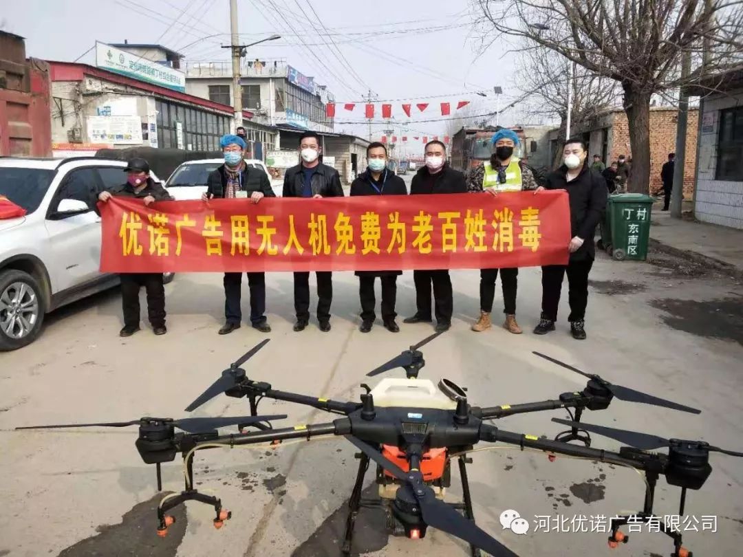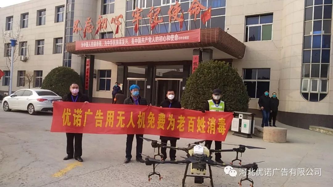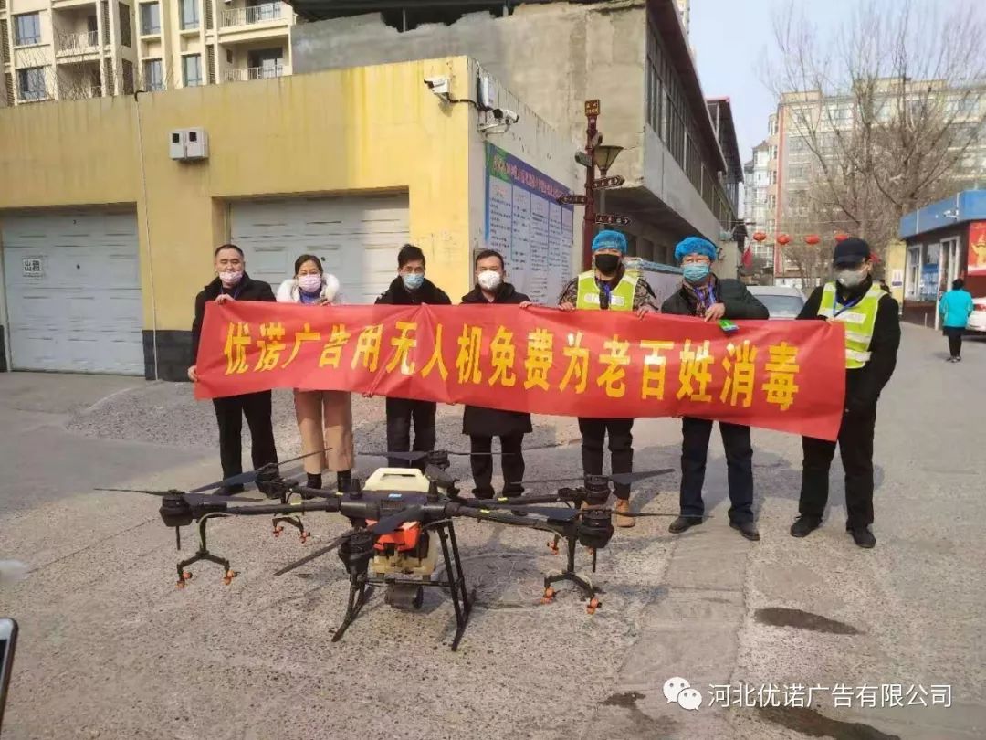 2月7日优诺广告用无人机为叮咛店镇、砖路镇、盛世豪庭、温馨2009等乡镇和小区免费消毒,采取高空全面喷洒,让病毒无处藏身,为防控工作起到了重要的作用,让我们齐心协力抗击病毒,中国加油,武汉加油。