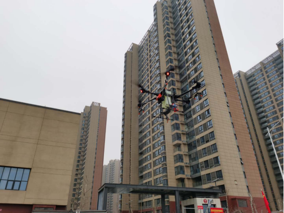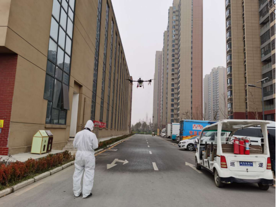 “各位父老乡亲,现在是疫情防控的特殊时期,没特殊事情,请不要乱出家门,在家勤洗手 、多通风,搞好自家卫生。如果出门记住戴口罩,进出小区扫二维码、凭出入证进出,大家一定要记住!”伴随着消毒液的高空喷洒,这段“喊话”也随着无人机的升空而缓缓播出。