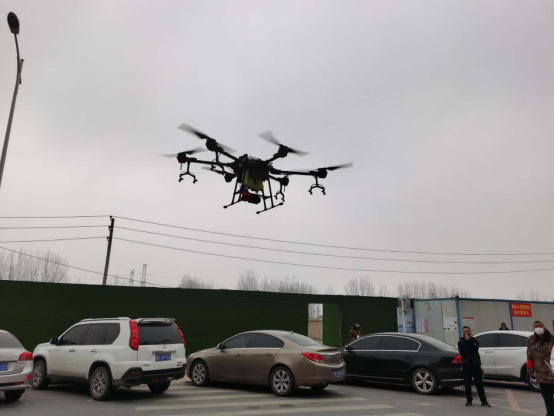 没错,这就是圃田乡通过升空无人机携带大喇叭高空“喊话”的现场。这不!2月14日下午,河沟王社区的上空,再次飞起那架熟悉的无人机,此次飞行在携带消毒液的同时还带上了扩音喇叭,扩音喇叭里播放的是疫情防护知识和市防控领导小组最新防控通告。这样的高科技操作绝对是再度升级,利用“空中广播”速度快、受地形影响小、覆盖面广的特点,将最新防疫政策和知识以及注意事项向居民“加速度”传递。同时,通过无人机摄像,对街头路面异常情况能够做到及时发现、及时喊话、及时管控,既降低交叉感染风险,又提升联防联控、群防群控的效果。