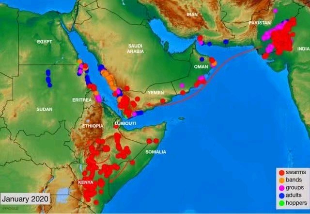 据了解,这场蝗灾已经肆虐了20多个国家,随风飞行可达到150公里/天,随时可能会逼近中国国境。面对这样的一场可能即将爆发的战斗,我们必须要提前做好准备。尤其是立春之后温度、湿度以及农作物等都非常适合昆虫的繁殖。3月份,全国各地将陆续进入植保季,再加上如此数量的蝗虫困扰将会对今年的农业发展有很大的影响。