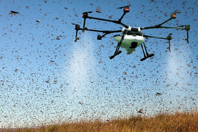 如此大规模的蝗虫来袭会啃食大量的农作物,那么农药喷洒不可避免。据数据显示,我国每年农药用量至少337万吨。如果使用常规的手段肯定是杯水车薪,尤其是在当下有限的时间内“虫口夺粮”将需要更高效率的手段,那么无人机喷洒将是目前最有效的手段之一。