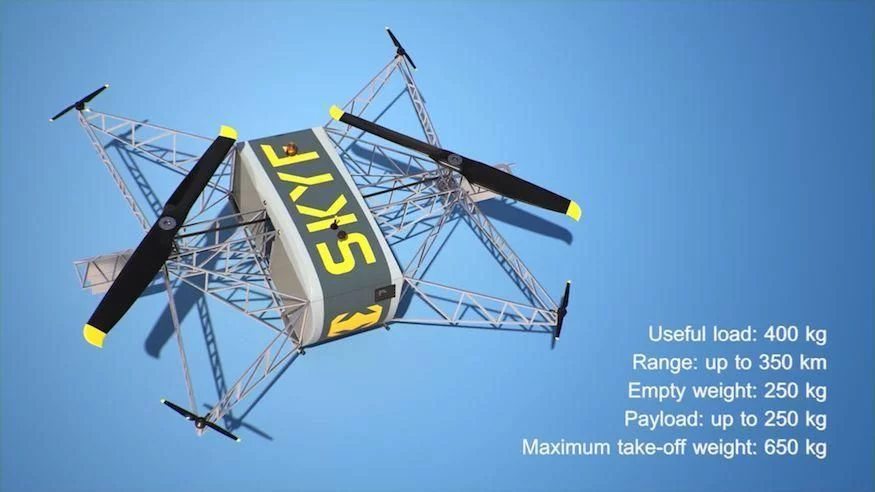 SKYF无人机的惊人载荷能力为它带来各种应用可能性,包括紧急运送病人、救火、货运等等。