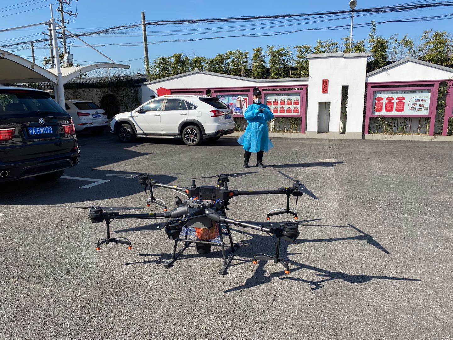 当天上午10点,金汇镇白沙村工作人员在志愿者的帮助下,利用无人机喊话通知村里来自重点地区的隔离人员,前一天预定的物资马上就送过来了。随后志愿者对无人机的置物篮进行了消毒,再将蔬菜、口罩、泡面等物资一一放了进去,再三确认无误后,这架大型无人机带着物资迅速飞向空中,短短三四分钟就飞到了这户隔离人家,而另外一台无人机则对整个运输过程全程监控,将实时画面传输到村里大屏幕上,确保隔离人员拿到了需要的物资。