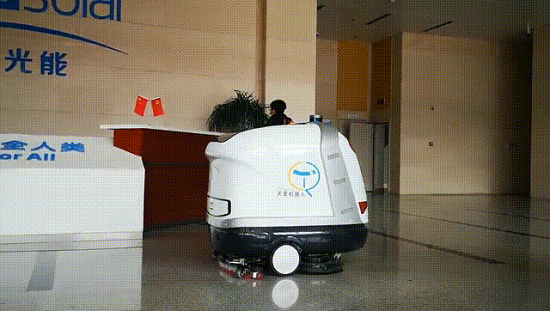 天合光能智能清洁机器人体内装载了大容量的消毒水箱,可提供日常清洗、消毒服务,进行大面积的自动驾驶清洁杀菌作业。