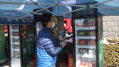 这些智能售卖柜是由京东物流X事业部自主研发,柜内商品全部来自京东7FRESH七鲜超市供应的最新鲜的瓜果蔬菜。透明的柜门方便消费者观察选择,选定目标后用手机扫描柜门屏幕上的二维码,柜门将自动打开。消费者拿走新鲜食材后,关闭柜门即可自动结算。整个过程方便快捷,而且不需要跟任何人接触,避免了人员聚集的风险。