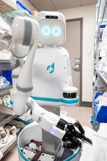 Diligent Robotics正在开发一套人工智能,使机器人能够在日常环境中与人类协作并适应人类。Diligent Robotics的Moxi是医院的机器人助手,可以帮助临床人员完成非患者面对的任务,例如收集物资并将其带到患者病房,运送实验室样本,从中央供给装置中取出物品以及取出脏的亚麻布袋。自动化可以帮助医院维持一致的护理工作流程,并为员工提供更多时间进行患者护理。