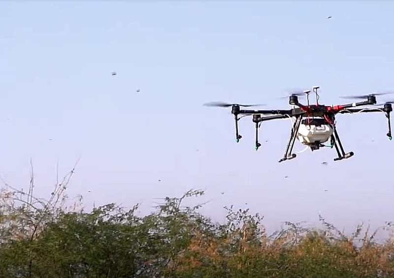 在连日来的飞行作业过程中,赛为智能赛鹰植保无人机通过装载灭蝗药剂,从低空向沙漠蝗虫进行喷洒,大量消灭蝗虫。相比人工喷洒和载人飞机喷洒,植保无人机作业更加灵活便捷,效率更高,成本更低,喷杀效果更为显著。同时,赛鹰无人机还可以根据地形进行灵活调整和改进,成为当地蝗虫防控工作的有力帮手。