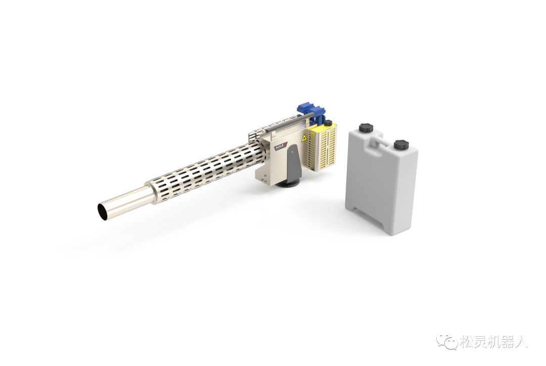 Thunder智能喷洒套件搭配机器人底盘可代替人工进入危险、污染环境中进行消毒作业。套件采用双化油器+双档位的模式,功率更大、雾化效果更好,功率大小可调,支持一键启动。30L大容量药壶厚实耐用,喷枪可旋转360度喷药,充分稀释气溶胶浓度。消杀面积1万平方米/H,可进入狭窄、有顶公共场所工作,降低工作强度,提高消杀效率。