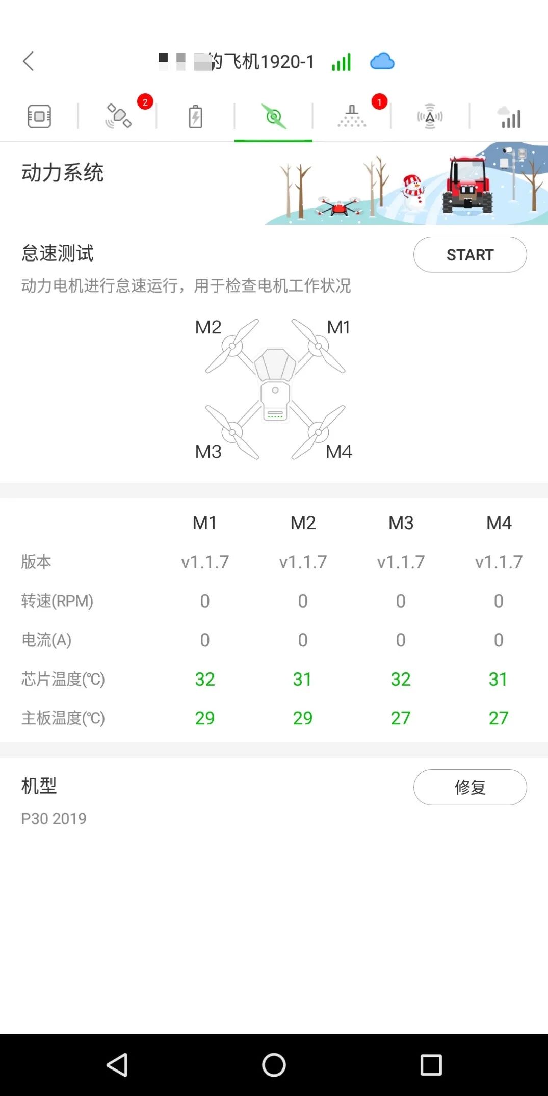 *注意:如果是首次使用极飞 P 系列植保无人机,在进行测试之前需要对无人机进行配对,配对成功后再进行以下测试。