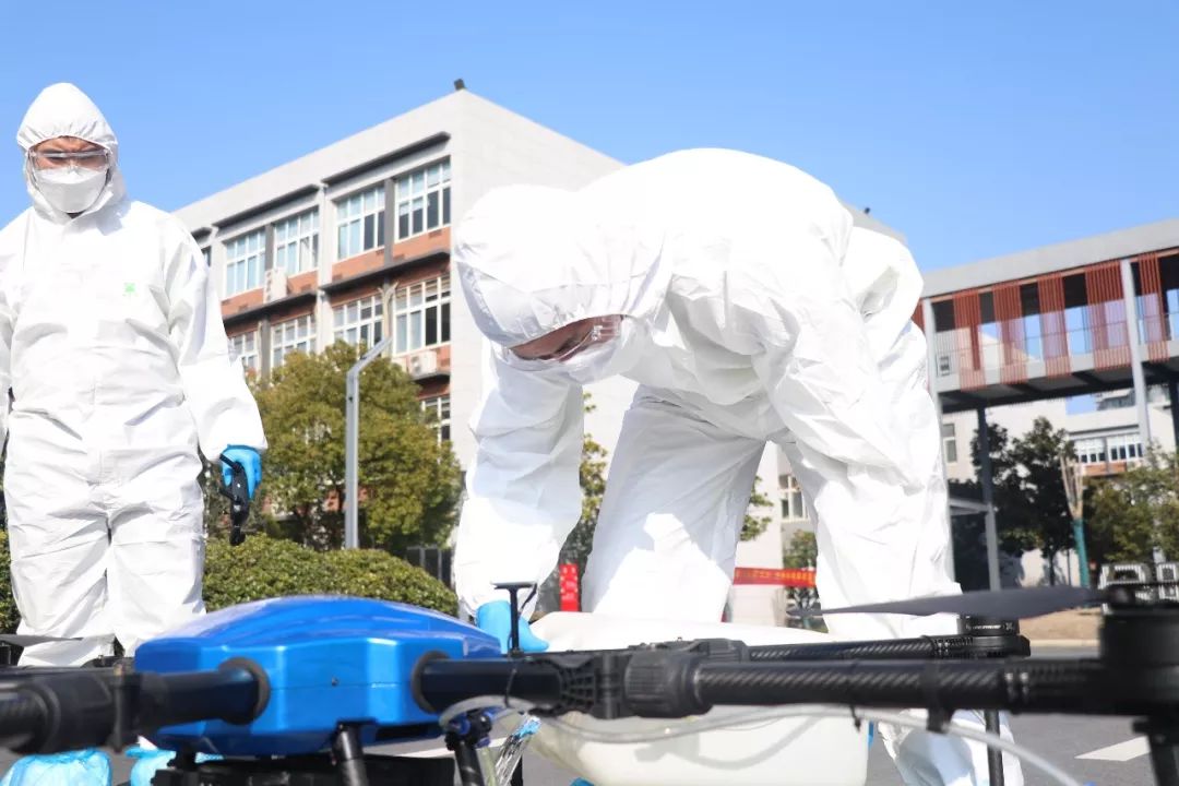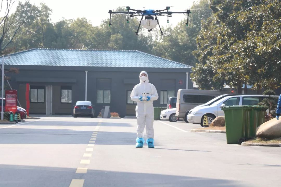 2月9日上午,我公司成立临时防御作业小组,对合肥市经开区创新创业园和智能装备科技园两个园区使用无人机进行消毒作业,对于园区内人员进出通道、篮球场、休闲广场、垃圾放置区域等重点区域进行喷洒消毒液,经过四个小时作业,累计对两个园区总计7万平的重点区域进行了消杀作业。