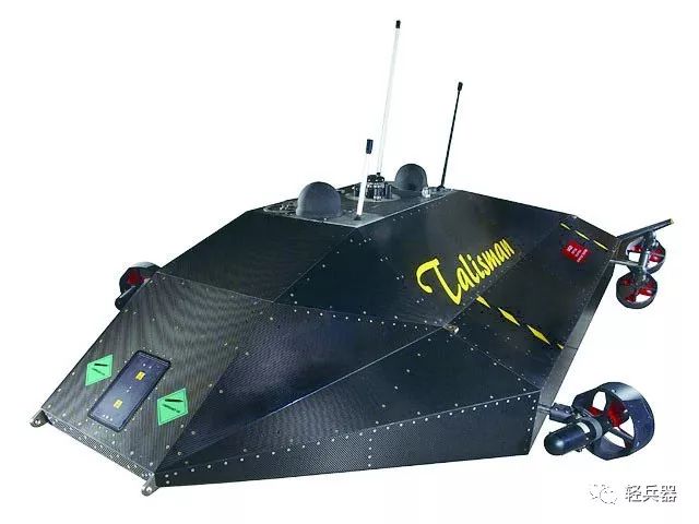英国BAE系统公司的“泰利斯曼”(Talisman)无人水下机器人于2005年8月进行首次试验。系统包括水下航行器、一个开放式结构控制系统、一个遥控台、通信模块、软件以及支持设备。系统质量1 800kg,长约4.5m,宽约2.5m。外壳由一些用合成纤维制成的小平板组成,这种结构用于分散主动声呐发出的声波,减小目标回波强度。