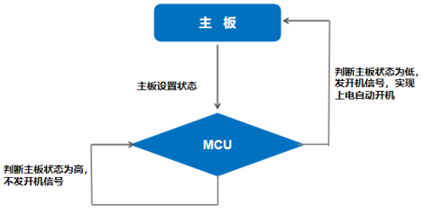 设备上电后,MCU会判断主板运行状态,监测设备是否正常开机,若发现主板启动异常,会发送信号控制主板再次开机,确保设备实现100%无故障触发。